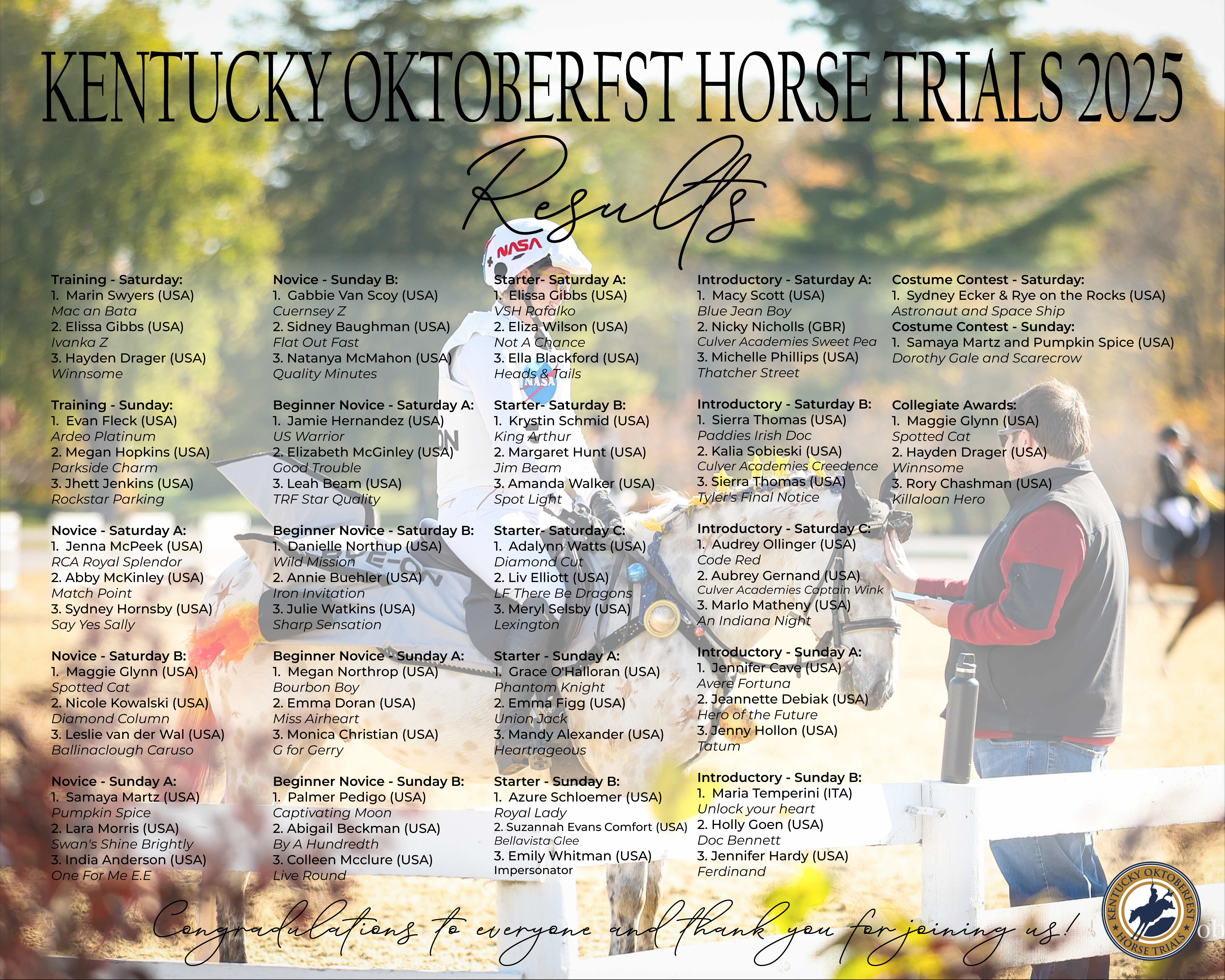 Join us for an end-of-season horse trials. This competition is ideal for anyone new to eventing and those who want a solid practice run or a move-up before wrapping up their eventing season. Oktoberfest is two one-day events and each day requires a separate entry. Competitors MAY enter both days, but will compete HC on Sunday if they choose to compete both days. The same level may be entered on both days, or a different level may be entered on Sunday. Horses entered both days may have a different rider on Sunday. Entry caps will be imposed for both days.